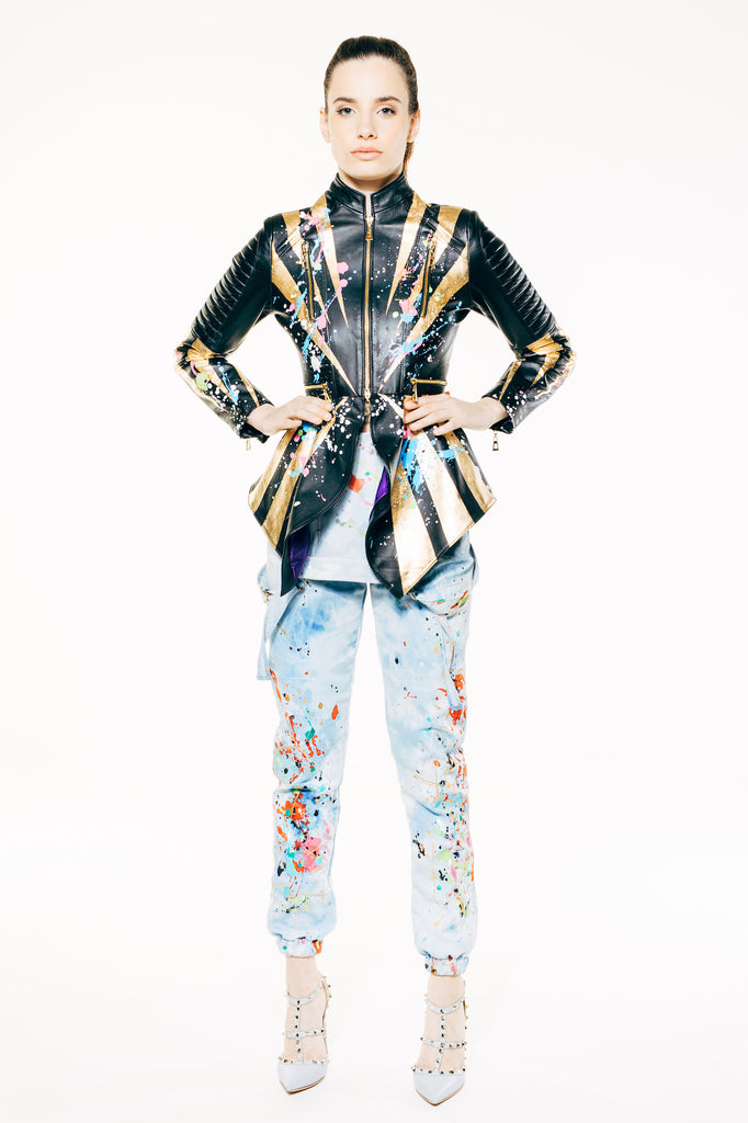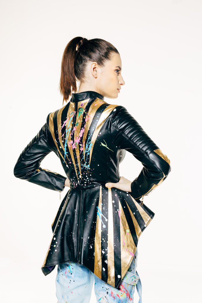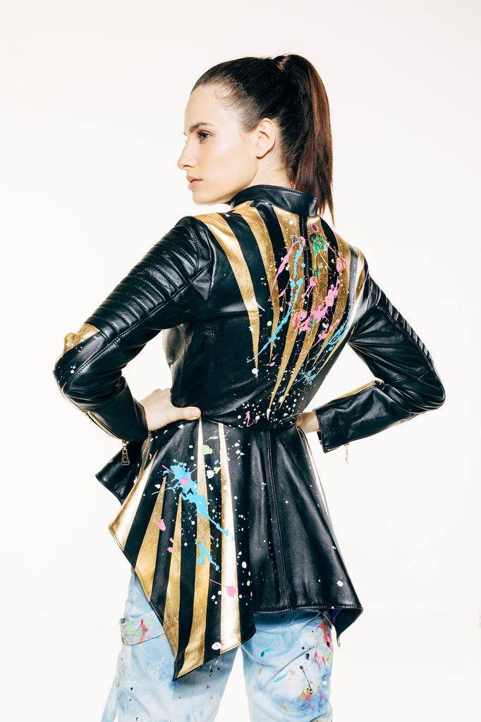 Gabriella Gold Hand-Painted Black Leather Jacket